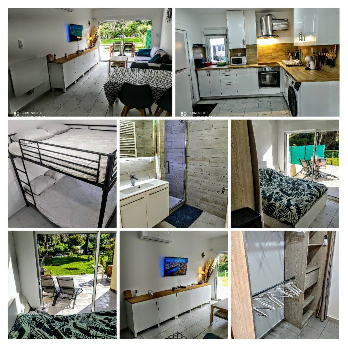 Cuisine équipée avec lave vaisselle, lave-linge.